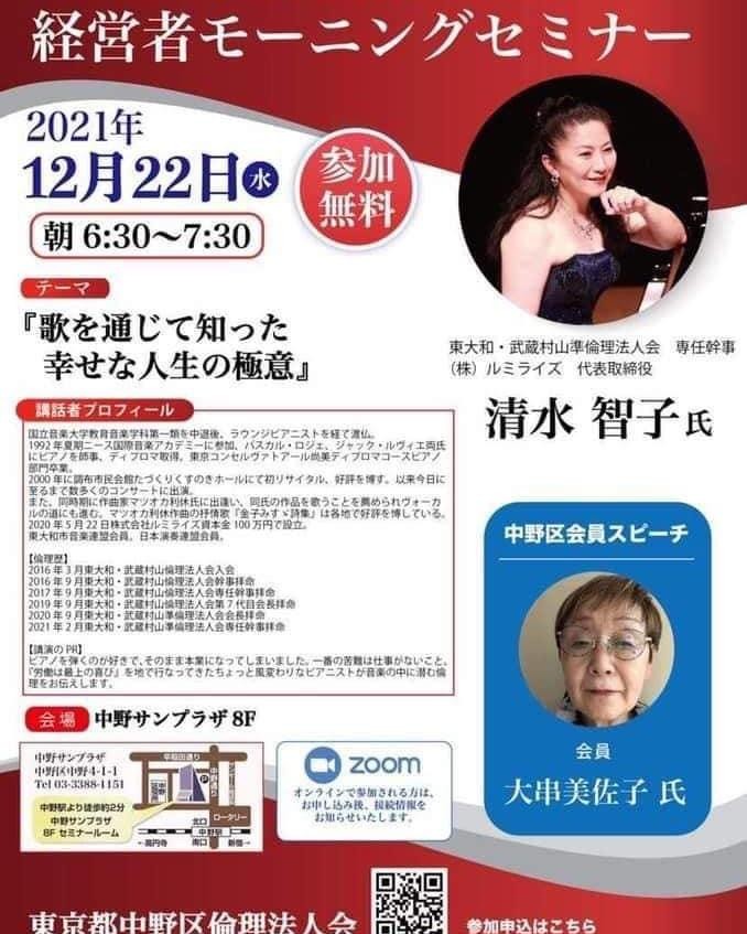 明日、中野区倫理法人会の経営者モーニングセミナーにて講話させていただきます。